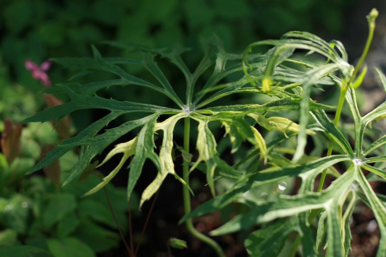 Eriti efektne on kevadine tärkamine, tundub nagu maa seest tõuseks hele udusulis seenekübar või väike suletud vihmavari. Südasuvel väikese grupina õhuline ja arhitektuurne. Sügisvärv kollakas.